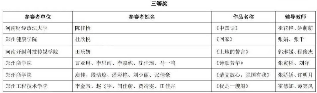 近日,河南省教育厅公布了第七届中华经典诵写讲大赛(河南赛区)“诵读中国”经典诵读大赛评选结果。我院师生表现优异,获得教师组一等奖1项、大学生组三等奖2项。