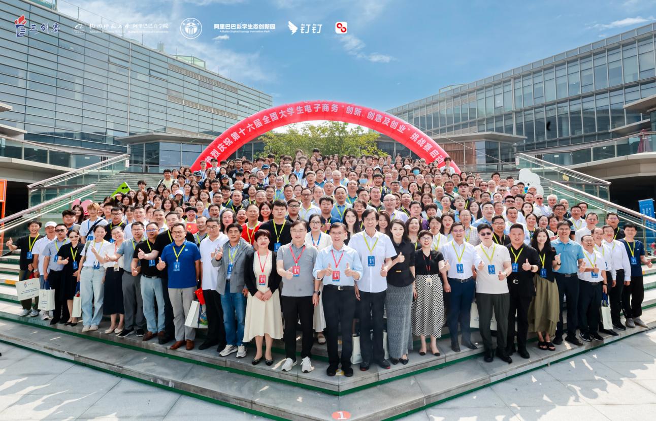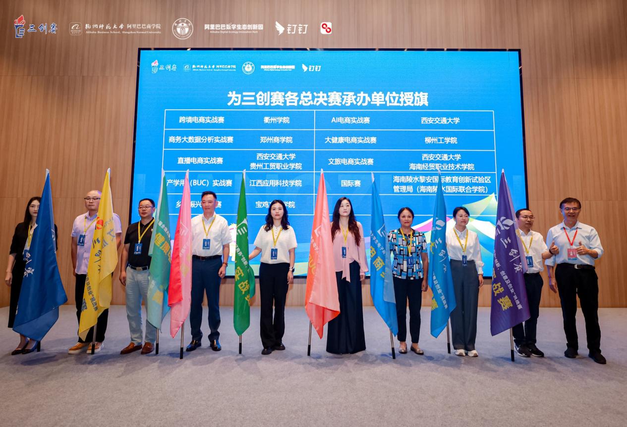 第十六届全国大学生电子商务“创新、创意及创业”挑战赛(简称“三创赛”)启动仪式暨新闻发布会于2025年10月12日上午在杭州市阿里巴巴数字生态创新园举行,我校作为第十六届全国电子商务“三创赛”实战赛道全国总决赛的计划承办单位受邀出席,管理学院院长李晓翠、国际商务教研室主任刘慧云作为代表到场参加,见证会议启动盛况并顺利接旗,我校将正式承办第十六届全国电子商务“三创赛”实战赛道商务大数据分析赛的全国总决赛。