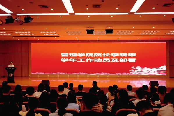 为深入贯彻落实立德树人根本任务,巩固深化教育教学成果,10月16日,我院在图书馆一楼国际报告厅召开2025-2026学年教风学风协同推进会,副校长刘升阳、管理学院院长李晓翠、党委书记宋森、副院长张卫丽、全体教师、辅导员、大一至大三年级各班班委代表、大三考研学生参加了会议,大会由宋森书记主持。