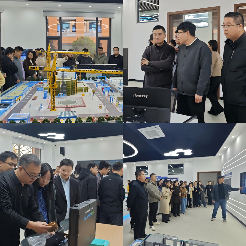 在正式研讨开始前,与会教师实地参观了”智能建造创新实践教学中心”,亲身体验智能建造技术在教学中的实际应用。该中心以“数智驱动、创新实践、跨界融合“为理念,集成数字孪生、BIM、物联网、无人机航测与机器人施工等核心技术,构建了高度仿真的工程实践教学环境。