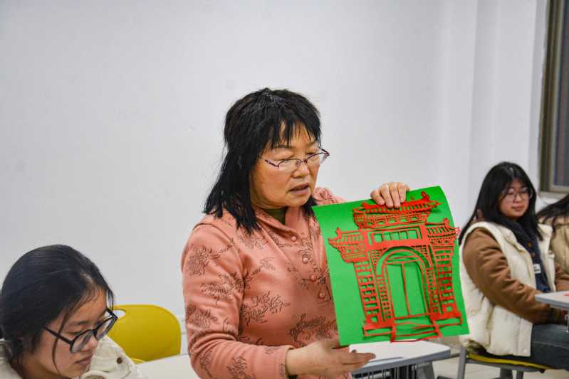 河南省郑州市河洛剪纸文化传承人周筱辉老师受邀来到了剪纸课堂。周老师对曹慧贞老师在剪纸传承与教学中的辛勤付出给予了高度赞扬,肯定了她将传统技艺引入高校课堂的积极探索。