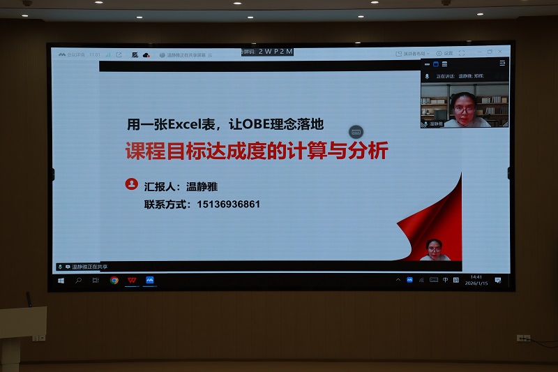 为深入推进OBE教育理念在课程教学中的贯彻落实,优化课程考核评价体系,提升教师课程目标达成分析能力,1月15日下午,我校组织召开OBE理念下课程考核评价培训与优秀案例交流分享会。各教学单位负责人、专业带头人及骨干教师代表参加会议,会议由教务处副处长周培娟主持。