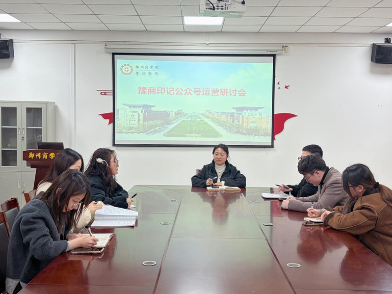 为扎实推进豫商文化品牌专业高地建设,充分发挥新媒体平台在文化育人中的重要作用,我院于1月14日下午在YZ104会议室召开“豫商印记”公众号运营研讨会,院长李晓翠及“豫商印记”公众号运营小组成员参加会议。本次会议旨在明确“豫商印记”公众号发展方向,促进平台影响力建设,推动内容创新与运营优化,为豫商文化品牌专业高地建设提供持续的内容支撑与品牌赋能。