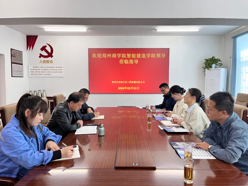 为深入贯彻国家"数字住建、智慧建造"战略部署,精准对接建筑行业数字化、智能化转型浪潮,2026年3月25日至4月3日,郑州商学院智能建造学院院长张燕燕率队,组织教研室主任、专业骨干教师与辅导员组成专项团队先后赴河南省豫翔工程检测有限公司、郑州大学城乡建设研究院河南三维建筑科技有限公司、郑州市市政公用工程检测有限公司、河南国智工程管理有限公司、河南远鹏工程检测咨询有限公司、河南华蓝信息技术集团有限公司等六家企业开展实地走访、座谈交流与合作洽谈。