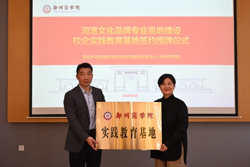 签约完成后,刘升阳副校长、郑州市非遗保护和李桂玲主任共同上台,为郑州商学院教育实践基地完成授牌交接,现场掌声热烈,共同见证校地携手育人的全新起点。
