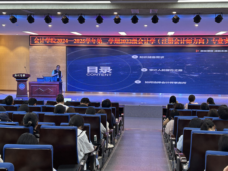 为提升学生实践能力、增强实务经验,5月20日上午,我院邀请信永中和会计师事务所高级经理赵利红和孙彩莲在自力楼报告厅开展专业实习专家报告会,2022级会计学(注册会计师方向)全体学生及指导老师参加了本次报告会,会议由宋若男老师主持。