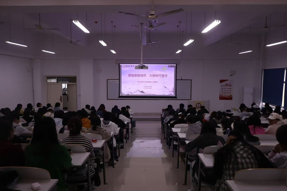 为引导2025级新生厚植爱国主义教育,树立正确的国家观、民族观,明确青年一代的使命与责任担当,在大学生活中坚定理想信念、实现全面发展,我院顺利举办新生爱国主义教育入学教育讲座。