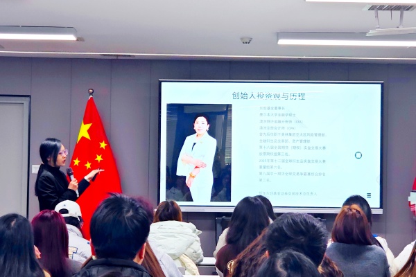 在专题分享会上,公司为同学们精心准备了一场内容翔实的交流活动,由人事部经理李伟、党建负责人常玥及业务骨干陈全威分别担任主讲。李伟经理首先系统介绍了公司的发展历程、经营范围、规模现状、创始人故事及未来战略规划,帮助同学们构建起对公司的宏观理解。接着,党建负责人常玥则从“使命引领、制度融合、角色担当”三个维度,生动阐释了党建工作如何与企业高质量发展同频共振,为同学们理解企业治理结构提供了独特视角。最后,业务骨干陈全威结合自身操盘经验,清晰解析了股票、基金与期权的区别,并通过实际项目案例,生动展示了期权操作的关键环节与注意事项,激发了同学们对金融实务的浓厚兴趣。