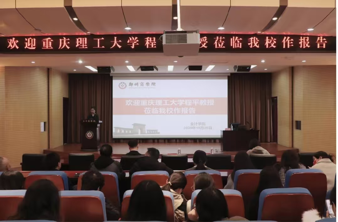 2025年10月28日,重庆理工大学云会计大数据智能研究所所长程平教授应邀访问郑州商学院,以《融合AI与RPA的审计数智思政:理念、模型与教学实践》为题,在图书馆五楼学术报告厅作专题报告。本次报告是我校学科专业建设高质量发展系列研讨会的重要环节,程平教授作为中国财会审数智化领域的权威专家应邀参会,将为我校推动大数据、人工智能与各商科专业的深度融合提供新的思路和实践借鉴。报告会由会计学院李伟平老师主持,会计学院院长祝利芳、副院长刘金金,会计学院和管理学院骨干教师、部分审计学专业学生参会。