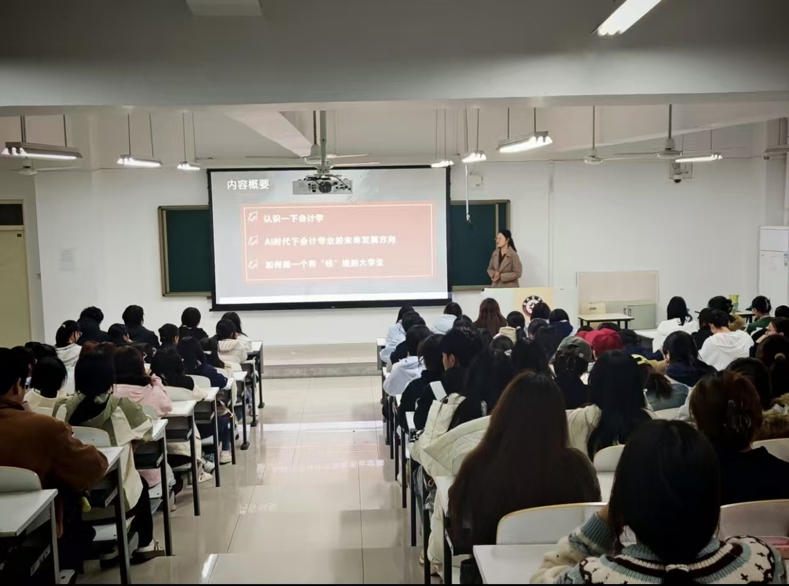 讲座伊始,主讲人首先分析了当前会计行业的发展趋势,指出随着数字化转型和智能化技术的应用,会计行业正面临着新的机遇与挑战。他强调,会计专业学生不仅要掌握扎实的专业知识,还需具备数据分析、信息系统应用等综合能力,才能在激烈的就业市场中脱颖而出。
