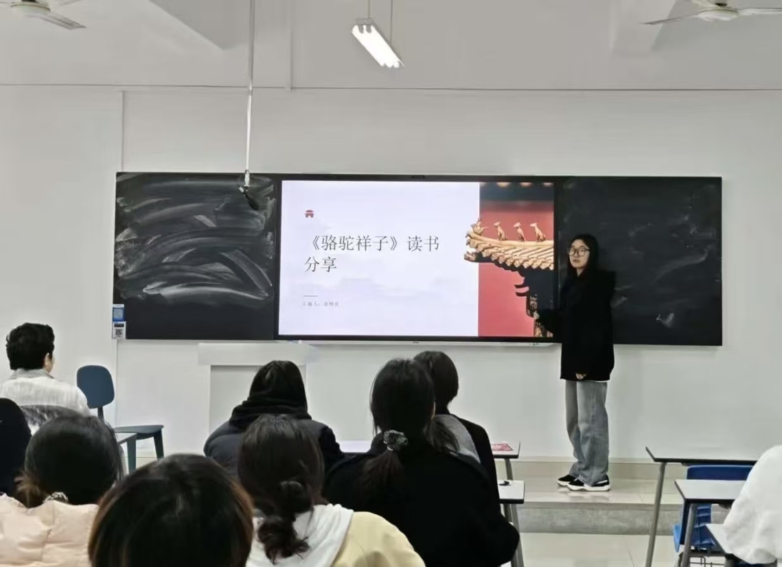 在《骆驼祥子》读书分享环节,连炜佳同学化身文学鉴赏者,深入剖析这部经典小说。聚焦祥子在旧社会中的挣扎与堕落,探讨个人命运与时代背景的深刻关联。分析书中各色人物的性格成因,解读人性在苦难中的复杂表现。在分析中,学生们不仅深化了对作品的理解,更对旧中国底层人民的生存状态有了更真切的感悟。