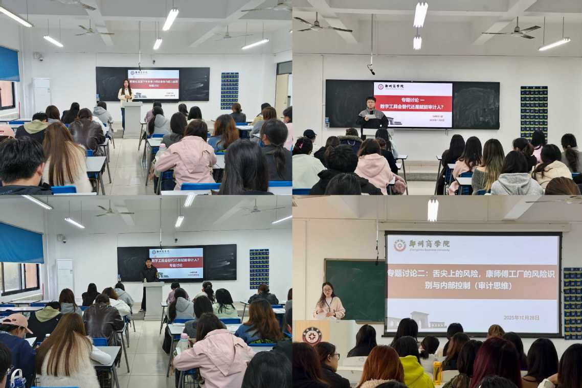 自10月24日至28日,2024级审计学专业各班级组织开展专题讨论会。各班级围绕数字工具与审计人的关系、业务流程与财务数据的关联、数智化审计等主题展开深入交流。同学们结合企业走访的实地见闻,深入探讨了数字化转型对审计实践的深刻影响,进一步理解了智能审计工具在风险识别、数据分析和流程优化中的应用价值;学生从生产流程出发,剖析业务活动如何生成财务数据,深化了对业财融合逻辑的认识,提升了实务分析能力。研讨过程中,师生围绕技术赋能与专业判断的关系展开互动,引导学生认识到,在数智化背景下,审计人员既要主动掌握新技术、新工具,也需坚守职业审慎与独立判断。