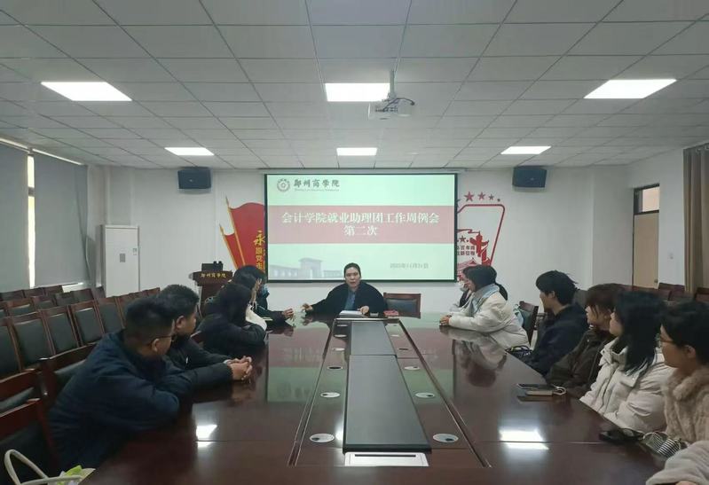 为扎实推进学院就业服务工作,凝聚团队协作合力,会计学院就业助理团于11月21日中午在GE103会议室召开本学期第二次工作例会。