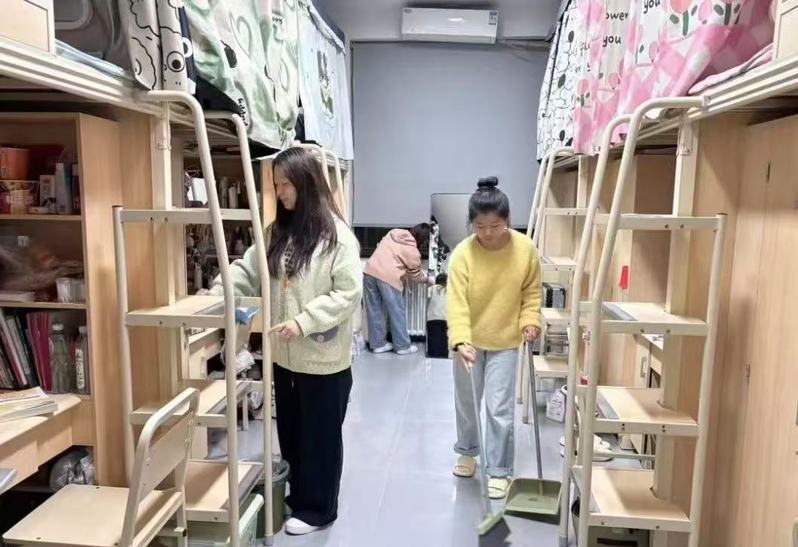 本次活动以“五净、三齐、两不准”为内务标准展开,清扫过程中,学生们以宿舍为单位积极响应,主动投身内务整理。各宿舍成员分工协作、默契配合,认真清理地面、窗台等卫生死角,细致擦拭门窗、桌面,确保居住空间洁净无污;同时规范摆放书籍、衣物、洗漱用品等生活物品,让宿舍物品摆放井然有序、一目了然。从零散物品的分类收纳到空间布局的优化调整,从宿舍的通风换气到细节的精心打理,同学们用耐心和责任心提升居住环境,通过自主规划与相互监督,让原本略显杂乱的宿舍面貌焕然一新,呈现出整洁规范、温馨舒适的良好风貌。
