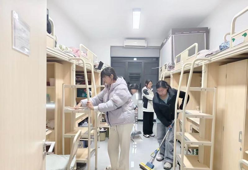 本次活动以“五净、三齐、两不准”为内务标准展开,清扫过程中,学生们以宿舍为单位积极响应,主动投身内务整理。各宿舍成员分工协作、默契配合,认真清理地面、窗台等卫生死角,细致擦拭门窗、桌面,确保居住空间洁净无污;同时规范摆放书籍、衣物、洗漱用品等生活物品,让宿舍物品摆放井然有序、一目了然。从零散物品的分类收纳到空间布局的优化调整,从宿舍的通风换气到细节的精心打理,同学们用耐心和责任心提升居住环境,通过自主规划与相互监督,让原本略显杂乱的宿舍面貌焕然一新,呈现出整洁规范、温馨舒适的良好风貌。