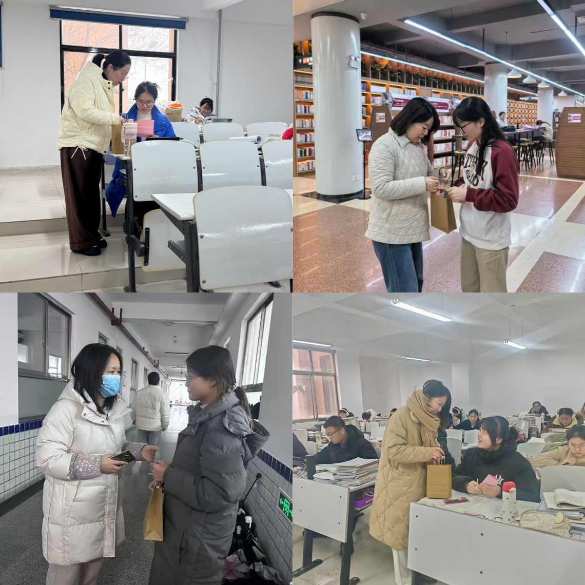 在2026年全国硕士研究生招生考试冲刺之际,为缓解考生焦虑,坚定备考信心,我院于12月12日至15日组织开展了针对考研学子的慰问活动,旨在为他们的最后冲刺给予关怀和支持。学院院长祝利芳、副院长刘金金携全体考研指导教师共同参与,活动由考研教研室统筹协调,将学院的关怀精准送达每一位追梦学子。
