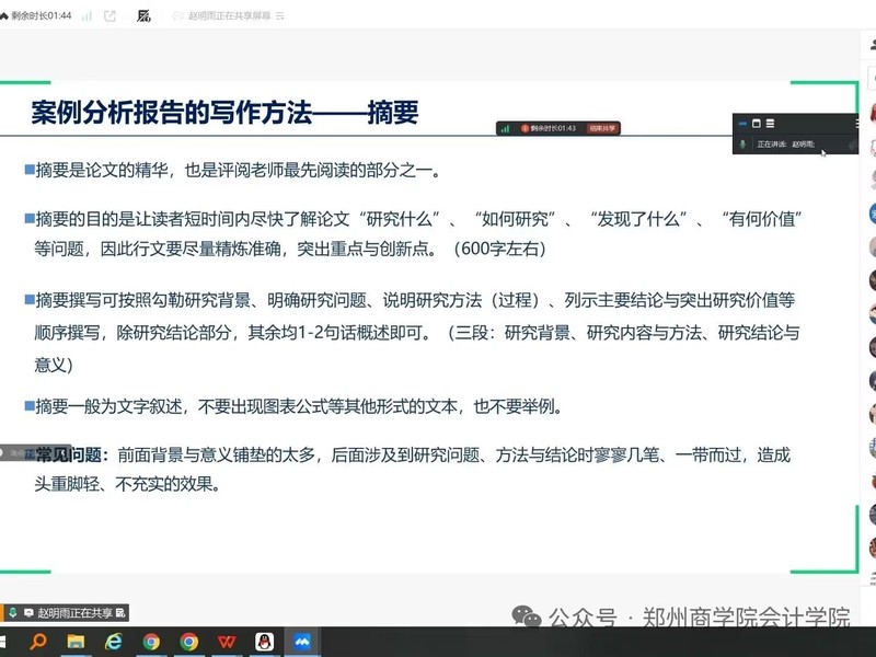 为提升指导针对性,学院构建“线上线下融合、个体群体兼顾”的指导模式。依托毕业论文管理精系统,指导教师实时跟踪学生初稿撰写进度,通过线上会议等形式,及时解答文献综述撰写、数据来源、理论框架搭建等共性问题。线下教师与学生一对一沟通,针对不同选题方向准发力,具体指导内容围绕梳理初稿逻辑框架、明确各部分写作要求。指导教师根据以往的指导经验,厘清了学生在毕业论文初稿撰写过程中的共性问题,提出相应的建议,旨在帮助学生明晰初稿撰写的逻辑框架,按时按质完成初稿的撰写。同时,老师们在指导过程中强调了论文初稿的提交时间节点及后续安排,强调学院将通过维普论文管理系统跟踪进度、开展中期检查等,保障指导工作有序推进。