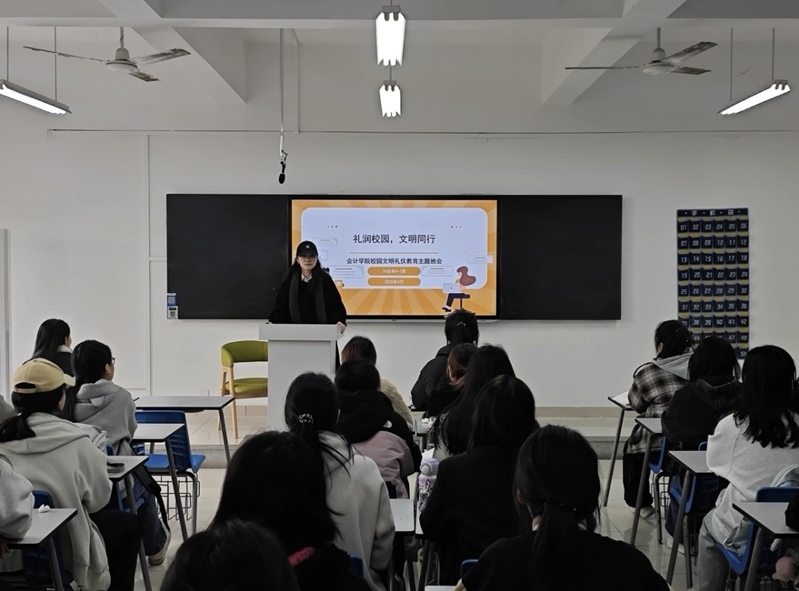为引导同学们树立文明意识,规范日常行为举止,共同营造整洁有序、友善和谐的校园氛围,3月22日,会计学院在广恩楼组织召开校园文明礼仪教育主题班会,围绕校园日常礼仪规范展开讲解,推动文明理念融入同学们的学习与生活。