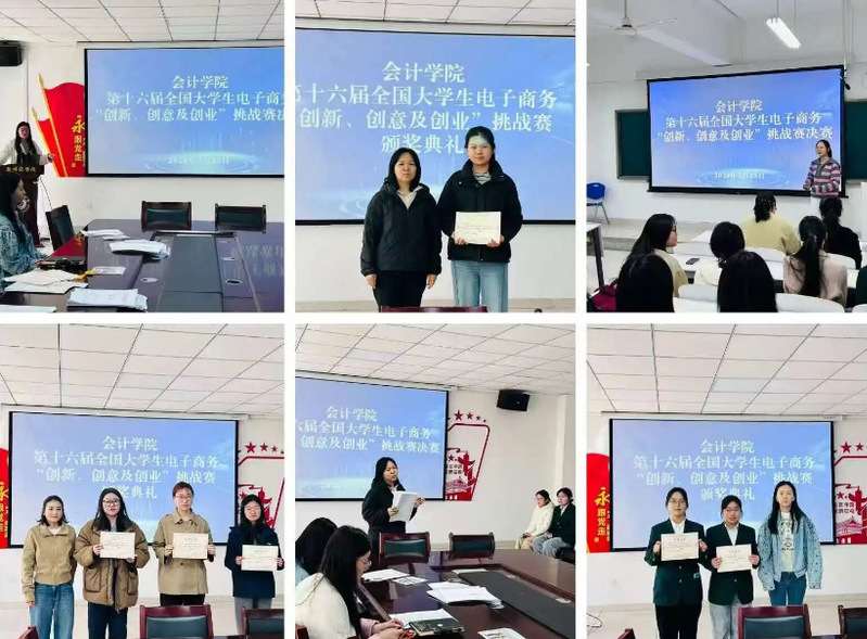 为进一步激发大学生创新、创意、创业热情,充分检验院内选拔赛成果,锤炼学生实战创新能力与团队协作素养,3月25日上午,会计学院在GE103、GE104教室隆重举办第十六届全国大学生电子商务“三创赛”院内决赛。本次比赛分为常规赛道(GE103)与实战赛道(GE104)两个会场同步进行,会计学院苗稳、白静等教师代表,洪娟、刘静等辅导员代表出席并担任评委,共十位评委分设在两个赛道进行评审。比赛由李娜老师主持,为决赛的有序开展保驾护航。