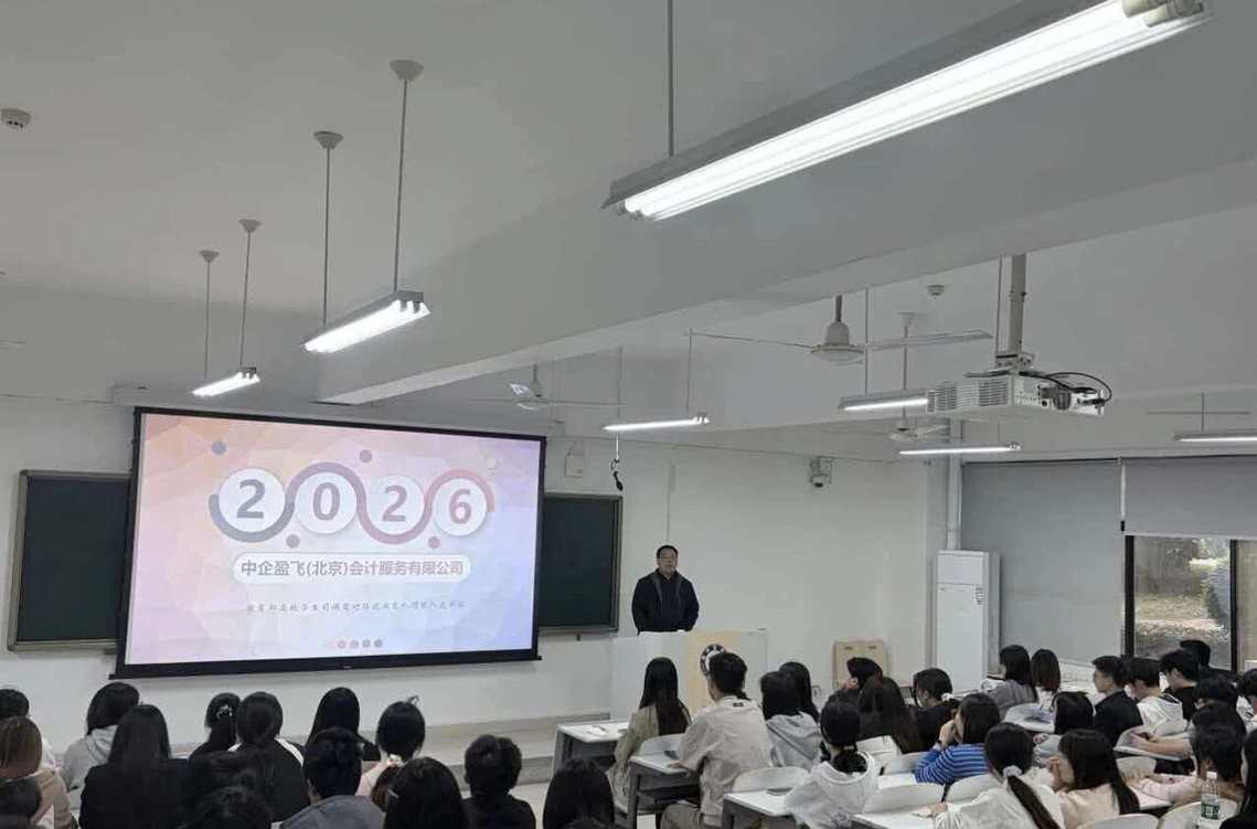 宣讲伊始,中企盈飞(北京)会计服务有限公司总裁郝博伟以会计专业认知为切入点,结合当前财会行业发展现状与产业应用实际,系统解读了会计专业的核心价值。通过贴合行业的实操案例,破除大家对会计“仅记账、算账”的模糊认知与理解误区,直观展现会计专业与现代企业管理、资本市场、数字经济发展的紧密关联,进一步加深了同学们对专业的认同感,点燃专业学习与职业探索的主动性与积极性。