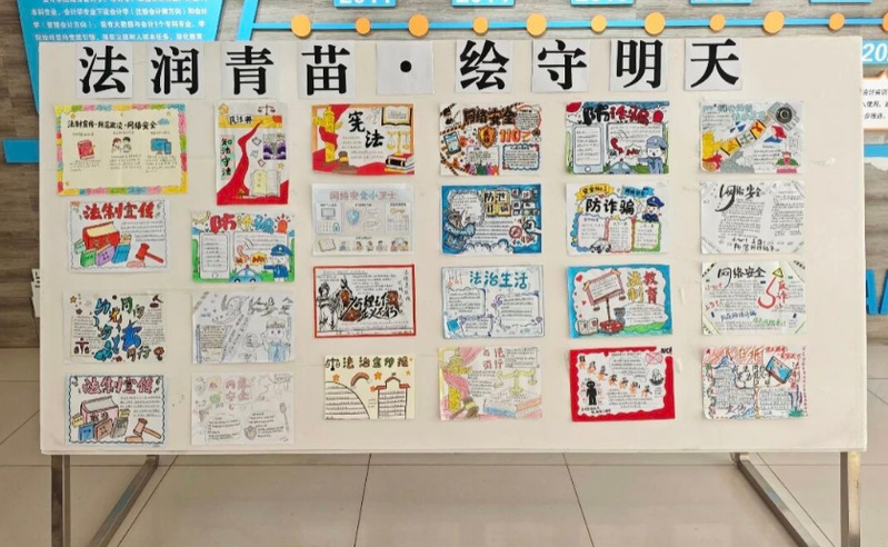本次展览以“法治宣传”“防范欺凌”“网络安全”为核心主题,面向全院学生征集原创手绘作品。活动启动后,得到同学们积极响应,同学们结合所学法律知识,以画笔为载体,将宪法精神、反欺凌理念、网络安全防护等内容融入创意设计,创作出一批主题鲜明、内容丰富、形式多样的海报作品。展览现场,一幅幅作品生动展现了法治与青春的紧密联系,吸引了众多师生驻足观看、交流学习。