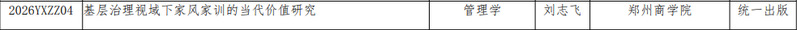 根据《河南省教育厅办公室关于申报2026年度河南省高校哲学社会科学优秀著作资助项目的通知》(教办社语〔2026〕173号)要求,经学校推荐,专家评审并公示无异议后,我校1项2026年度河南省高校哲学社会科学优秀著作资助项目予以立项资助出版,立项名单如下。