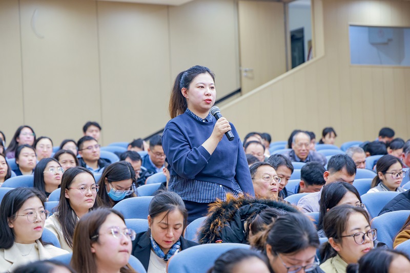 现场互动环节中,教师代表热情参与,踊跃提问。专家们逐一细致解答,不仅提供了详尽的解释,还结合实际案例进行了深入浅出的阐述,整个现场气氛热烈,双方在探讨中不断碰撞出思想的火花。