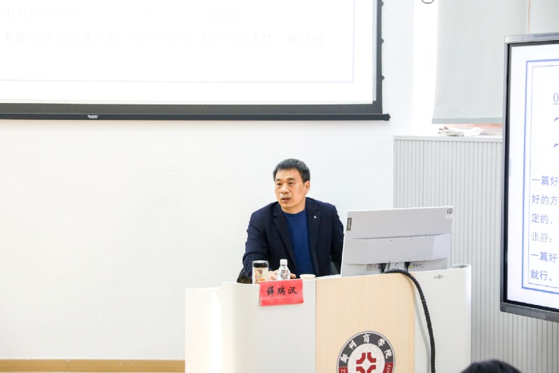 报告会上,薛教授立足学术研究的基本规律与实践要求,围绕学术论文、报纸文章与智库报告的内涵,学术论文选题的原则和方法,学术论文写作的方法与规范三大维度,展开系统阐述。他结合自身多年从事编辑工作的丰富经验,引入大量典型学术案例,生动剖析了当前教师在学术写作中普遍存在的选题空泛、论证松散、逻辑欠严谨、论据支撑不足等共性问题。同时,薛教授以深入浅出的方式,详细讲解了从选题挖掘、框架搭建、行文表述到投稿发表各环节的关键要领与注意事项,深刻揭示了提升论文质量和发表成功率的内在逻辑与实践路径。