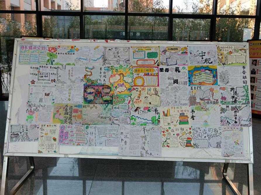 活动前期,同学们踊跃参与创作,以画笔为媒、以文字为翼,将阅览室文明准则与创意设计巧妙融合。活动现场,一幅幅精心绘制的手抄报整齐陈列,色彩明快的版面设计、工整娟秀的文字表述、寓意鲜明的插画元素,既生动诠释了“安静阅读、爱护书籍、文明借阅、保持整洁”等核心礼仪,又传递出对校园文化建设的热忱。每一笔线条都凝聚着同学们对文明的敬畏,每一段文字都承载着对美好阅读环境的向往。不同的创意表达与共同的文明追求相互交织,让文明理念在轻松融洽的氛围中深入人心。