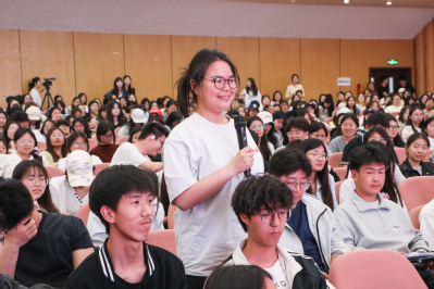 如何写作与阅读是在场师生最关注的话题,徐则臣老师以“摸着石头过河”为喻,指出写作既要脚踏实地、扎实积累,也要对创作方向有清晰认知。结合自身创作和阅读经历,他向学子提出两点寄语:一是要培养“慢”的能力,在慢下来的过程中读懂人世百态、沉淀心性;二是要在碎片化时代建立“整体感”和“系统思维”,通过持续阅读搭建认知框架,最终形成自己的世界观与方法论。赵瑜老师则鼓励在场学子多读书,阅读没有捷径可走,无论何时起步、具备怎样的阅读基础,只要下定决心启程,总能让眼里多一分光亮。