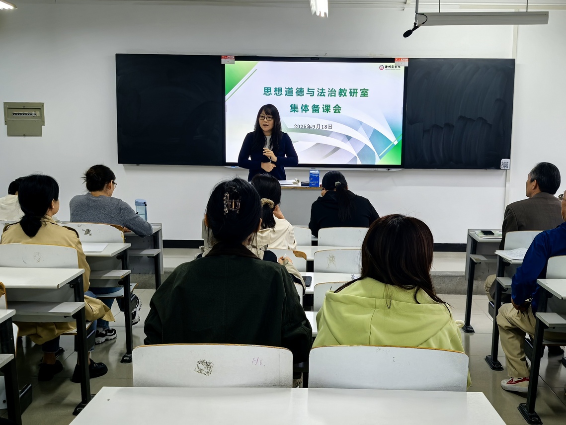 为扎实推进本学期“思想道德与法治”课程教学工作,学方向、凝聚备课共识,思想道德与法治教研室于2025年9月18日下午在我院310教室开展集体备课会。本次备课会由德法教研室主任杨丽丽主持,我院全体德法课程授课教师参会。