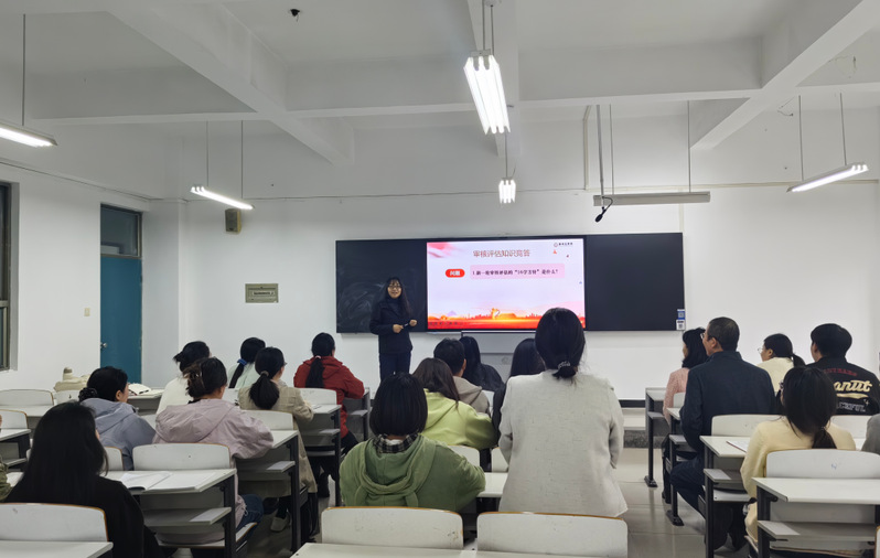 随后,进行了审核评估知识竞答,主持人从题库中随机抽取题目,通过趣味抢答的方式开展。过程中,大家积极抢答,互动热烈,取得了较好的效果。