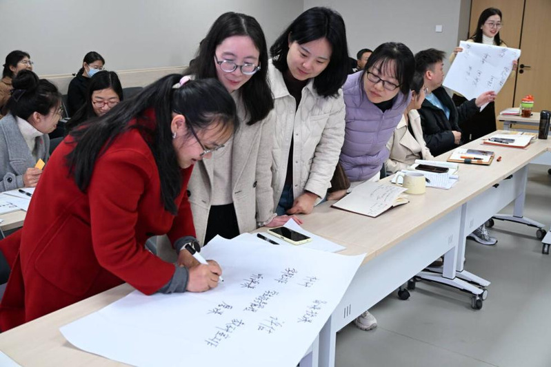 活动现场,在郭教授的指导下,我院教师就“纸条·范”“钻石学习法”等互动形式的开展进行了现场演示。教师们纷纷表示,此类互动设计既能激发学生思考,又能有效提升课堂参与深度。