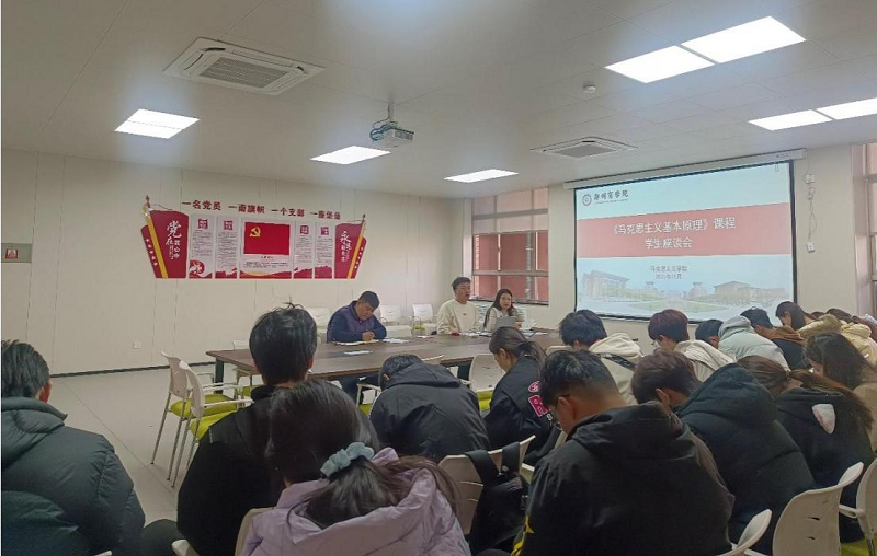 为持续提升思政课教学质量,畅通师生沟通桥梁,倾听学生心声、回应学生关切,11月26日,我院召开2025-2026学年第一学期学生座谈会。本次座谈会由思想道德与法治教研室和马克思主义基本原理教研室组织学生分别召开,各教研室主任主持,无课教师代表与学生代表共同参与。