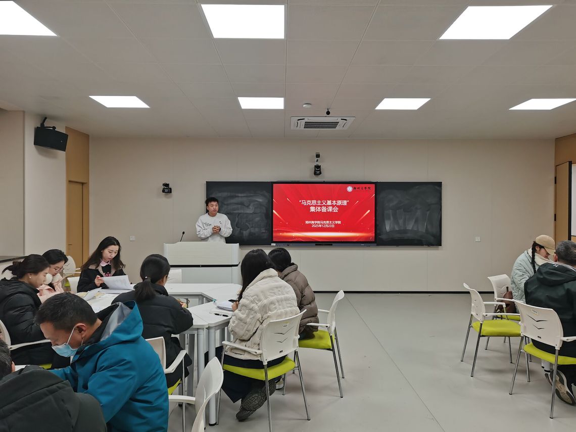 为助力学生高效复习,提升教学质量,12月23日上午,《马克思主义基本原理》课程在4号教学楼一楼智慧教室开展2025-2026学年第一学期第十四次集体备课会——期末复习题安排专题会议。本次会议由教研室主任李巨存主持,全体承担该课程教学任务的无课教师参加。