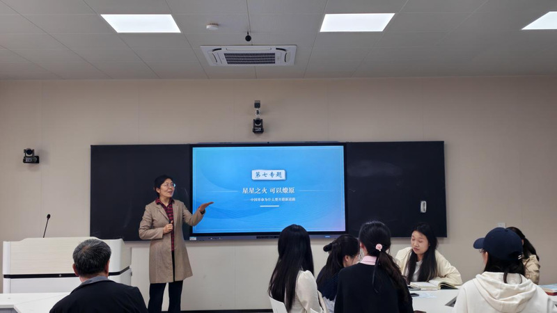 交流研讨环节,教师们立足教学实际踊跃发言,聚焦红色案例融入、课堂互动设计、重难点教学方法等交流经验,围绕引导学生感悟革命道路探索的艰难曲折、把握历史意义等关键问题深入研讨,为讲深、讲透、讲活本章教学内容夯实了基础。之后,王岩老师结合“名师工作坊”的学习内容,分享了个人的学习体会,为课程组教师参加教学技能比赛提供了帮助。