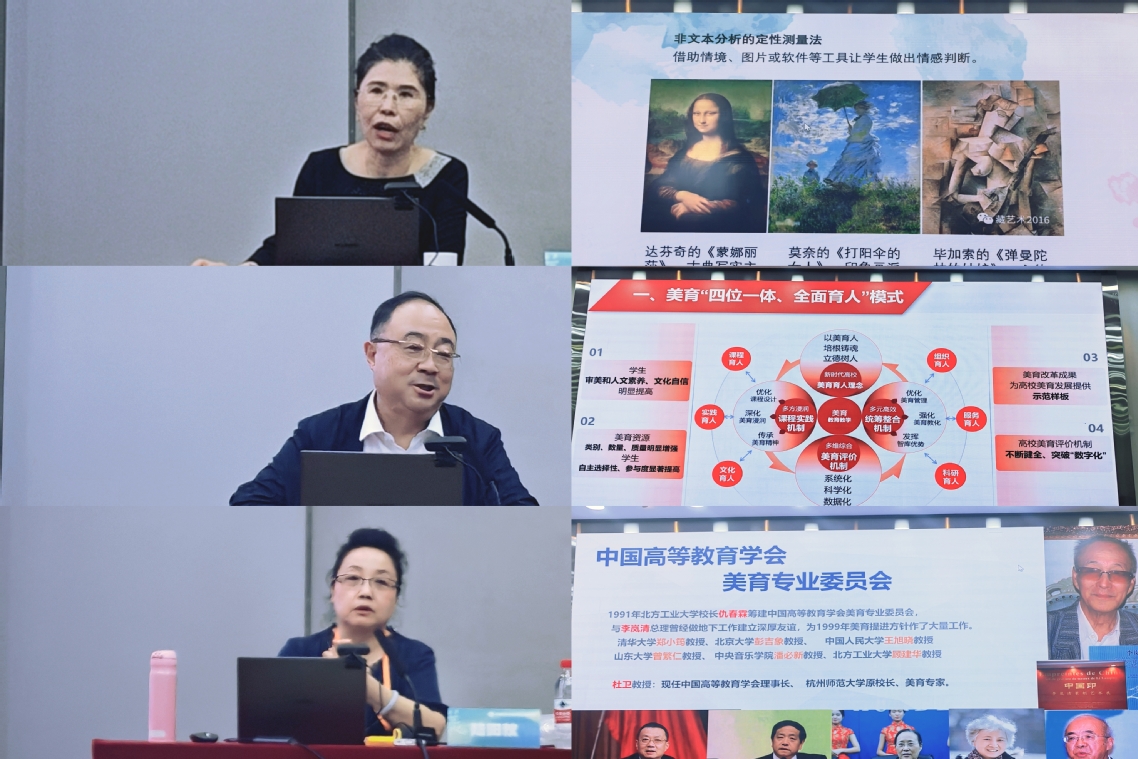 在接下来4天的培训中,丰富多样的课程内容持续为两位带来启发。吴磊老师就学校美育浸润行动的政策进行了详细解读,并深入探讨了其推进路径,使她们对相关政策有了更全面的把握,明确了实践中的方向和方法。史红老师围绕 “高校美育课程体系建构与美育评价” 展开讲解,从课程体系的搭建到评价体系的完善,条理清晰、内容详实,为学院的美育课程建设提供了宝贵的参考。李霞老师的“人工智能赋能高校智慧美育课程建设”讲座极具前瞻性,介绍了人工智能在美育课程建设中的应用前景和实践案例,让两位看到了科技与美育融合的广阔空间,为学院未来的课程创新打开了新的思路。尤其是陆阳秋老师以 “美育课程教学+艺术实践深耕美育三十七载:美育教学体悟与案例漫谈”为题,分享了自己三十七年的美育教学经验和丰富实践案例,其深厚的教学功底和对美育的热爱感染了在场每一个人,为我院未来在美育工作中实现教学与实践的结合提供了生动范例。