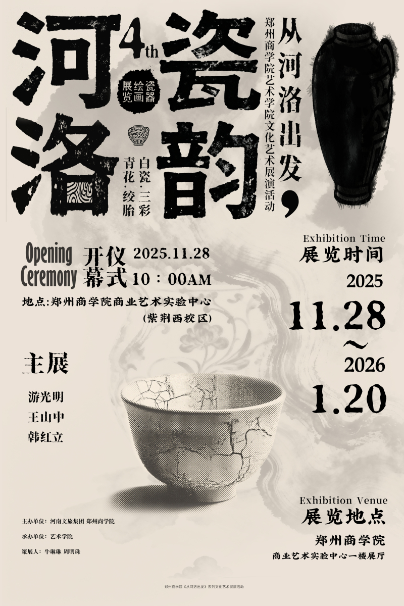 为深入传承中华优秀传统文化,厚植河洛文化底蕴,落实美育育人要求,学校联合河南省文旅集团举办《从河洛出发》系列文化艺术展演第四场 ——“河洛瓷韵”瓷器艺术展。现将组织参观事宜通知如下: