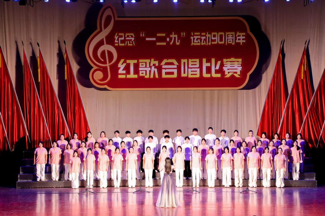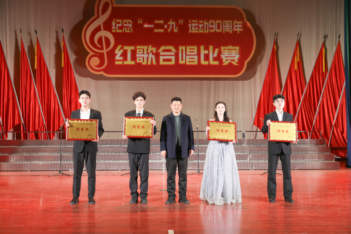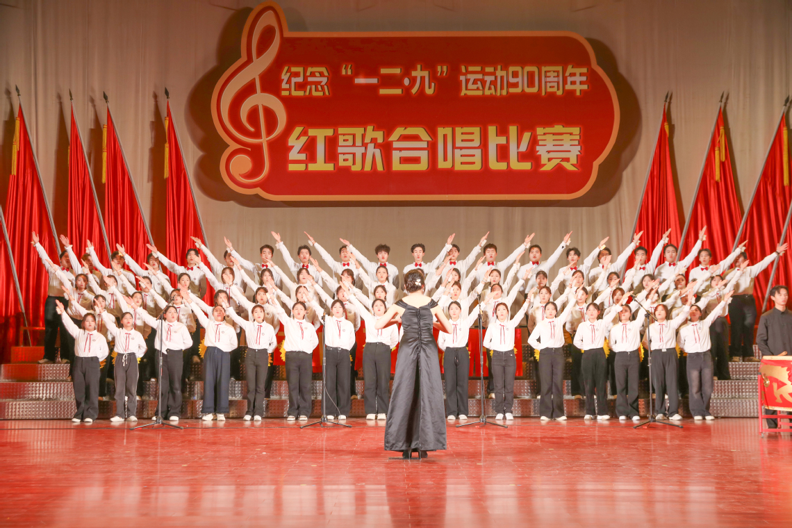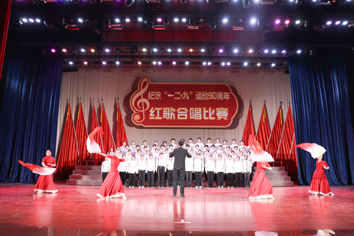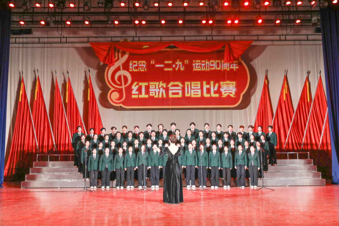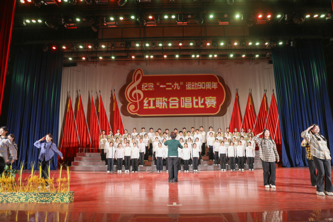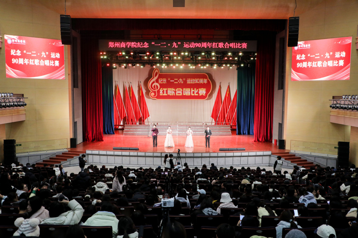 赓续红色血脉,厚植家国情怀。12月9日晚,我校纪念“一二·九”运动90周年红歌合唱比赛在成功大会堂隆重举行。校党委副书记兼纪委书记裴晓涛,相关职能部门负责人、各学院党委书记及师生代表共计2000余人现场观看。巩义市音乐家协会主席司永山、副主席王冰,校团委老师王颖璇,文传学院老师康文涛,美育教育中心老师李芮晗受邀担任评委。
