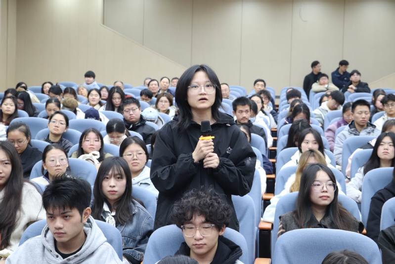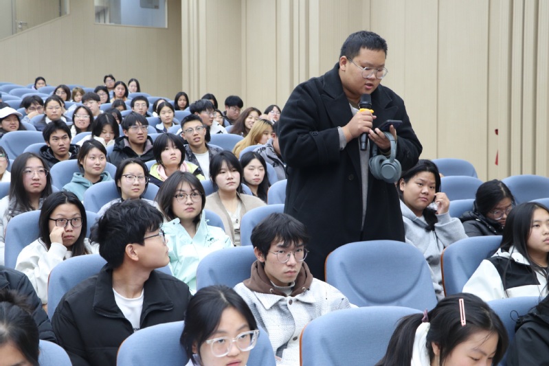 互动环节中,学生围绕人工智能时代大学生应具备的素养、职业发展影响及伦理问题与周教授展开深度交流。周教授对我校学子积极好学、勇于思考的求学态度给予高度评价,并结合具体案例提出建议:要主动学习、适应时代发展,将人工智能作为高效辅助工具,而非过度依赖,培养“科技赋能+人文洞察”的复合能力,以应对智能时代的挑战与机遇。