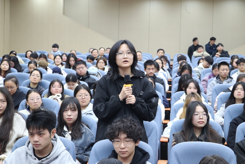 在互动环节,现场师生踊跃提问,就“AI对特定行业的影响”“个人应如何适应智能时代”等问题与陆教授进行了深入交流。陆教授以其渊博的学识和富有洞见的解答,赢得了阵阵掌声。