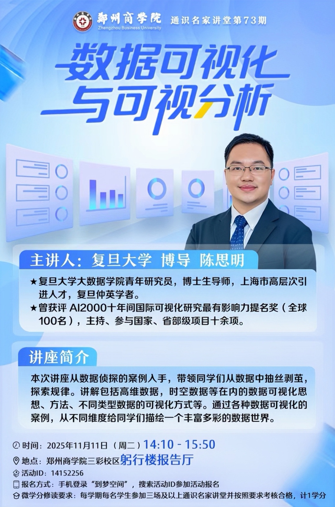 陈思明,复旦大学大数据学院青年研究员,博士生导师,上海市高层次引进人才,复旦仲英学者。曾获评AI2000十年间国际可视化研究最有影响力提名奖(全球100名),主持、参与国家、省部级项目十余项。其研究成果发表在顶级期刊和会议上,并担任多个国际会议的程序主席、组织委员会成员。曾获得多个会议最佳论文/海报(提名)奖。主要研究方向为大数据可视化与可视分析,交互式AI与混合人机智能,具体包括:社交媒体分析、自动驾驶、数字孪生脑计算、金融科技、数字人文等。