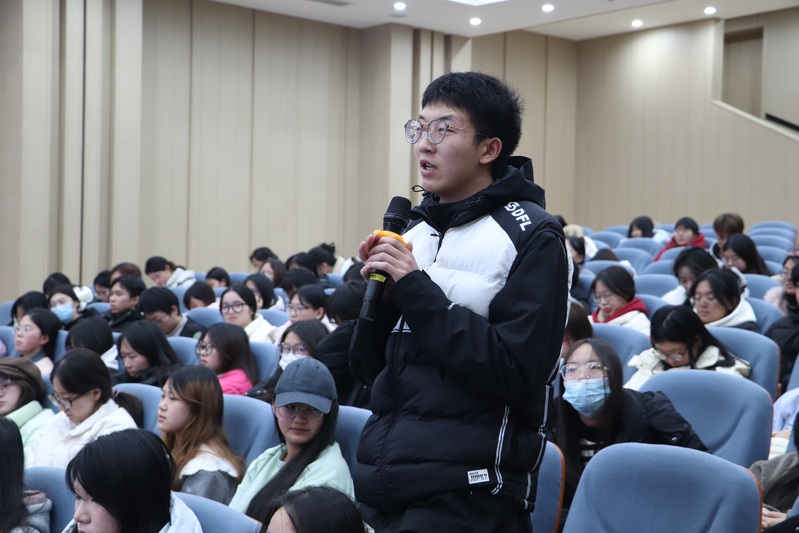 互动环节里,同学们热情高涨,结合专业所长各抒己见。陈波教授耐心倾听、逐一作答,敏锐捕捉观点中的闪光之处,还结合实例拓展延伸。问答交锋间,思想火花频频迸发,现场氛围热烈又不失条理,尽显浓厚的学术研讨氛围。