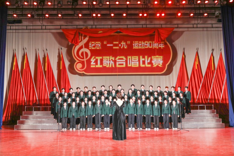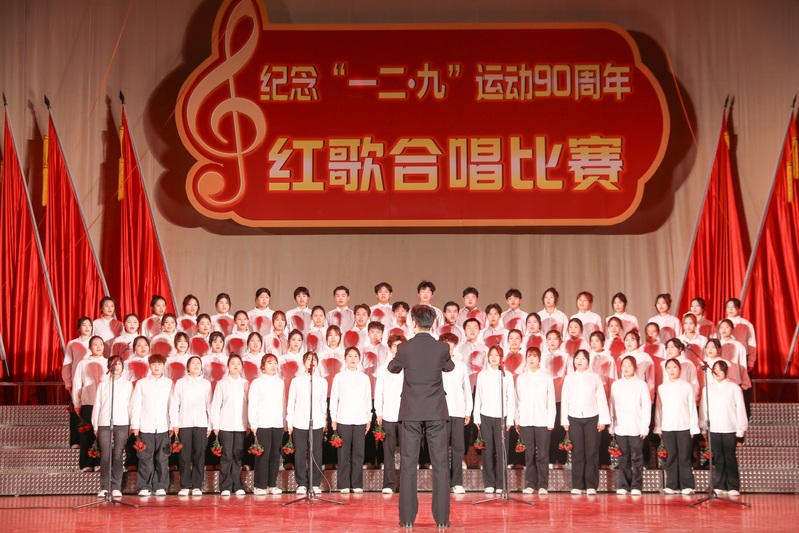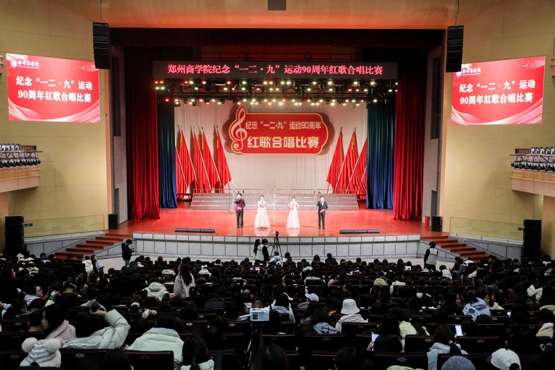 赓续红色血脉,厚植家国情怀。12月9日晚,我校纪念“一二·九”运动90周年红歌合唱比赛在成功大会堂隆重举行。校党委副书记兼纪委书记裴晓涛,相关职能部门负责人、各学院党委书记及师生代表共计2000余人现场观看。巩义市音乐家协会主席司永山、副主席王冰,校团委老师王颖璇,文传学院老师康文涛,美育教育中心老师李芮晗受邀担任评委。