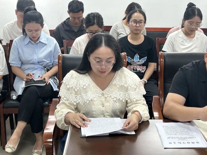会议伊始,教学秘书王佳结合董事长报告精神分享工作感悟,提出要进一步增强责任意识,主动对标工作要求,在日常教学管理中坚持不断学习,不断提升业务能力,以更高效的服务助力学院教学工作有序开展。