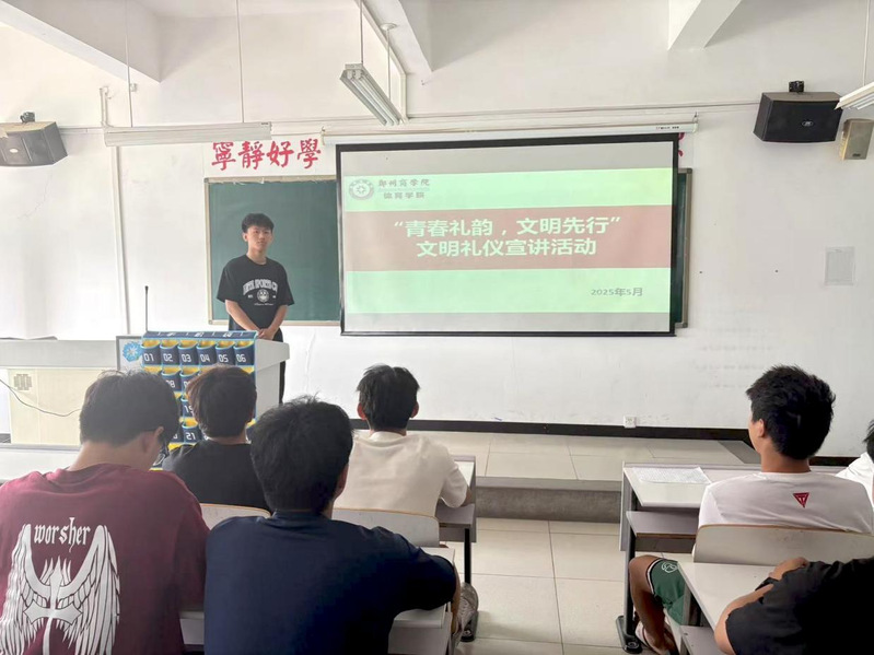 在活动过程中,各班围绕“青春礼韵,文明先行”主题,依据具体案例讲解文明礼仪知识,同时,各班班长通过ppt、视频等多种形式,生动诠释了文明礼仪的概念、分类和重要性,重点介绍了文明礼仪规范,让同学们对文明礼仪知识有了更加深刻的了解。在互动交流环节,同学们踊跃发言,现场气氛热烈。在此过程中,加深了同学们对文明礼仪的理解,增加了文明礼仪知识储备。