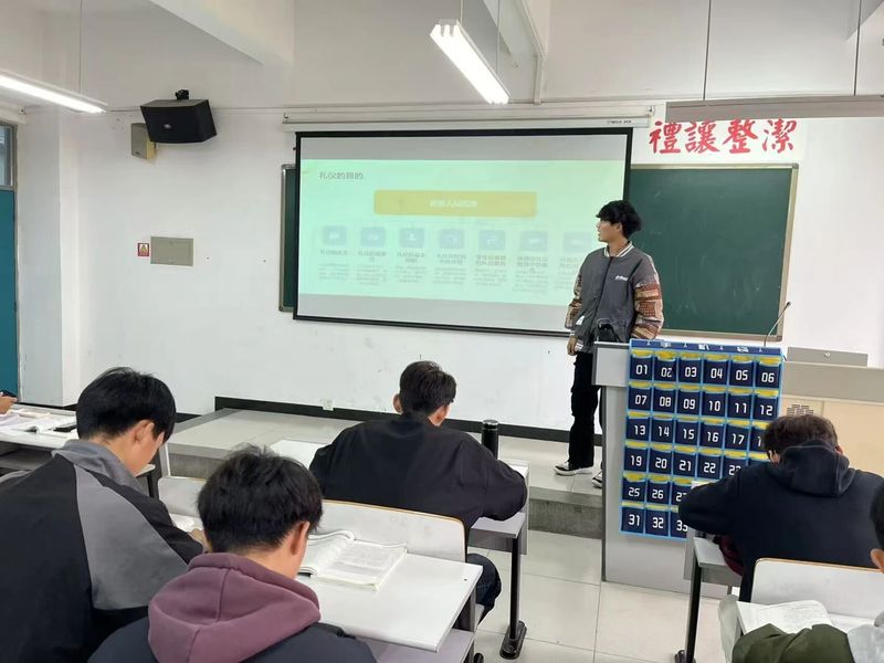活动伊始,各班班长通过精彩的PPT展示,介绍了礼仪在古今中外的重要意义。同学们积极参与讨论,分享身边的礼仪故事。学生是一个学校的形象大使,一举一动不仅关乎自身,也关乎于一个学校的对外形象,由此大学生学习礼仪知识,具有完备的礼仪知识是必不可少的。通过开展此次“学礼育人,以礼树人”主题班会,学生不仅能够更系统归纳的了解礼仪知识,也能调动学生学习践行礼仪知识的积极性。