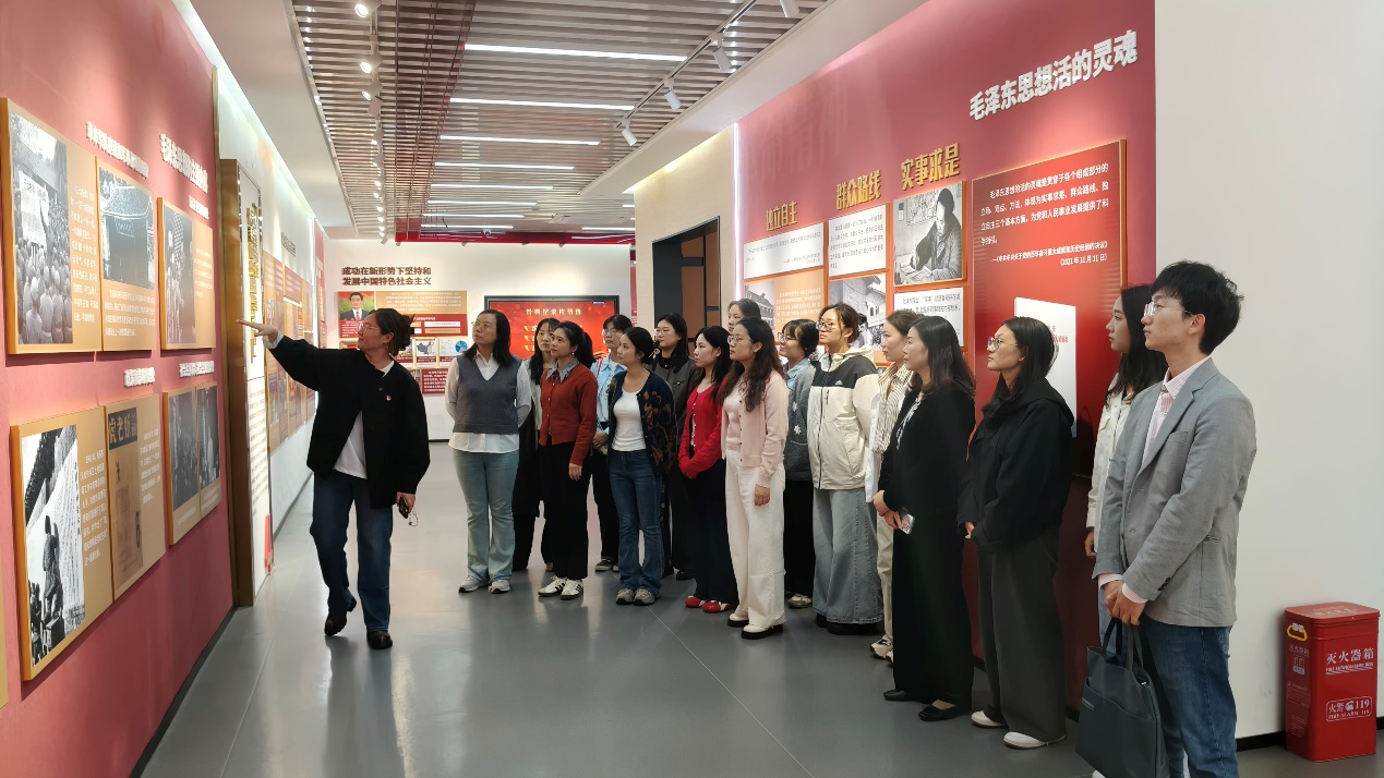 活动伊始,支部党员们首先参观了马院精心打造的“红色文化墙”,并在教师第三党支部书记许明月同志的生动讲解下,大家沿着历史脉络,仔细观看了展墙上记录中国共产党波澜壮阔奋斗历程的文字和珍贵图片。从建党的开天辟地,到新中国成立的改天换地,再到改革开放和新时代取得的历史性成就,一幅幅生动的历史画面,让党员同志们再次深刻感悟到党的初心使命与辉煌成就,接受了一次直观而深刻的党史和党性教育。