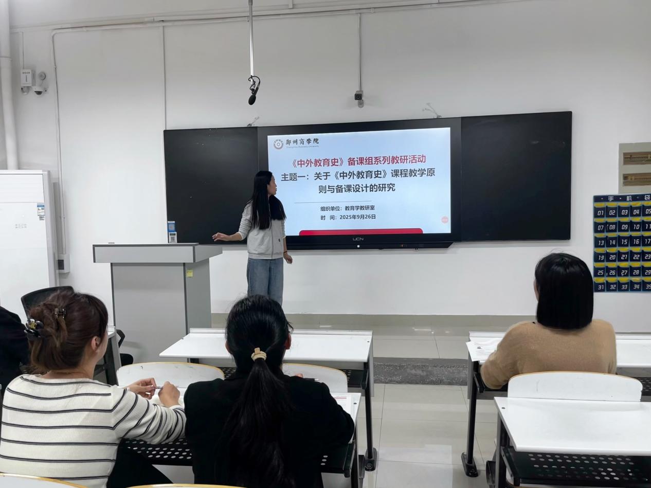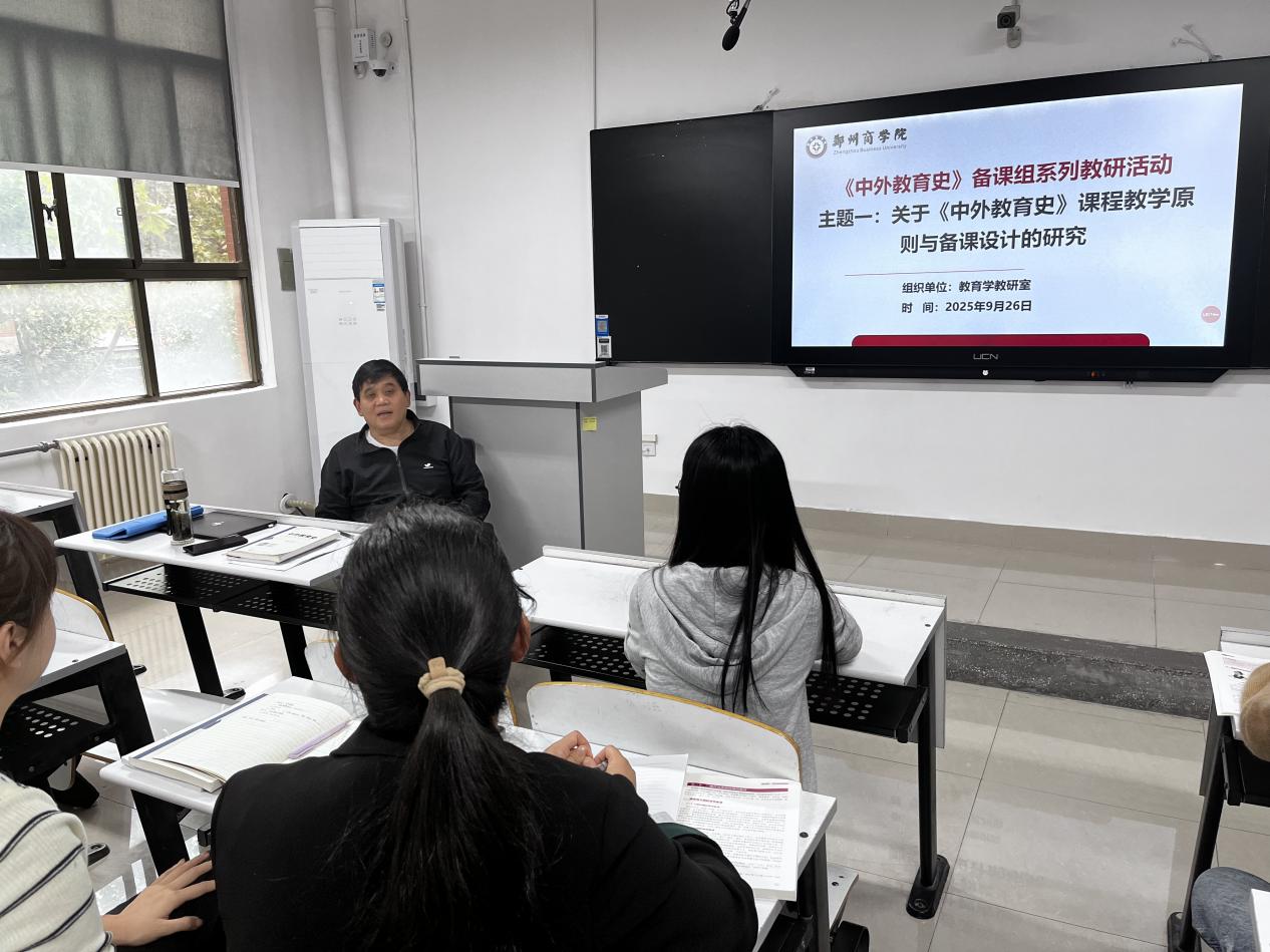 为加强青年教师教学能力,提高青年教师教研水平,2025年9月26日下午,于自立楼H209教室举办文传学院教育学教研室《中外教育史》教研小组备课系列教研活动,活动由教育学第一教研室教师孙仕琪主持。