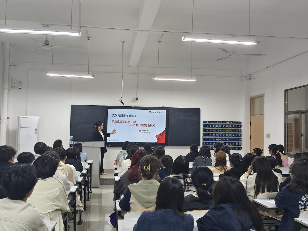 为引导2025级知识产权专业新生建立清晰的专业认知,提前规划职业生涯路径,9月28日,法学教研室组织开展《职业生涯发展第一课》新生“专业认知”实践活动。本次活动围绕知识产权专业与职业发展的深度关联,通过专题讲座、经验分享等形式,为新生搭建起从专业认知到学业规划再到职业准备的衔接桥梁,助力新生迈好大学职业生涯第一步。